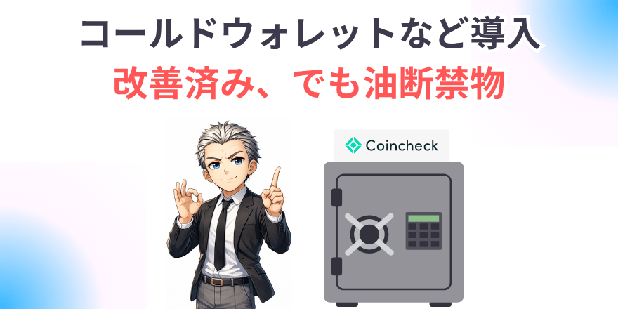 2018年のハッキング事件後、マネックスグループに買収され、コールドウォレット管理・マルチシグ導入・金融庁への正式登録など大幅なセキュリティ改善が行われています。「完全に安全」とは言い切れませんが、2018年当時と比べれば大幅に改善されています。リスクを分散するために複数の取引所を使うことをおすすめします。