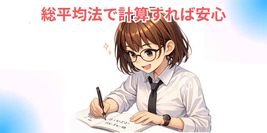 総平均法とは、1年間(または保有期間)に購入したすべての同一通貨の総購入金額を、総購入数量で割って平均取得単価を求める方法です。